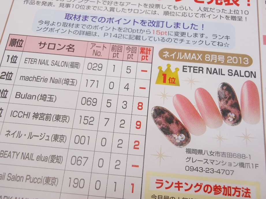 『NAIL MAX 10月号』でエタ―ネイルが1位になりました!!